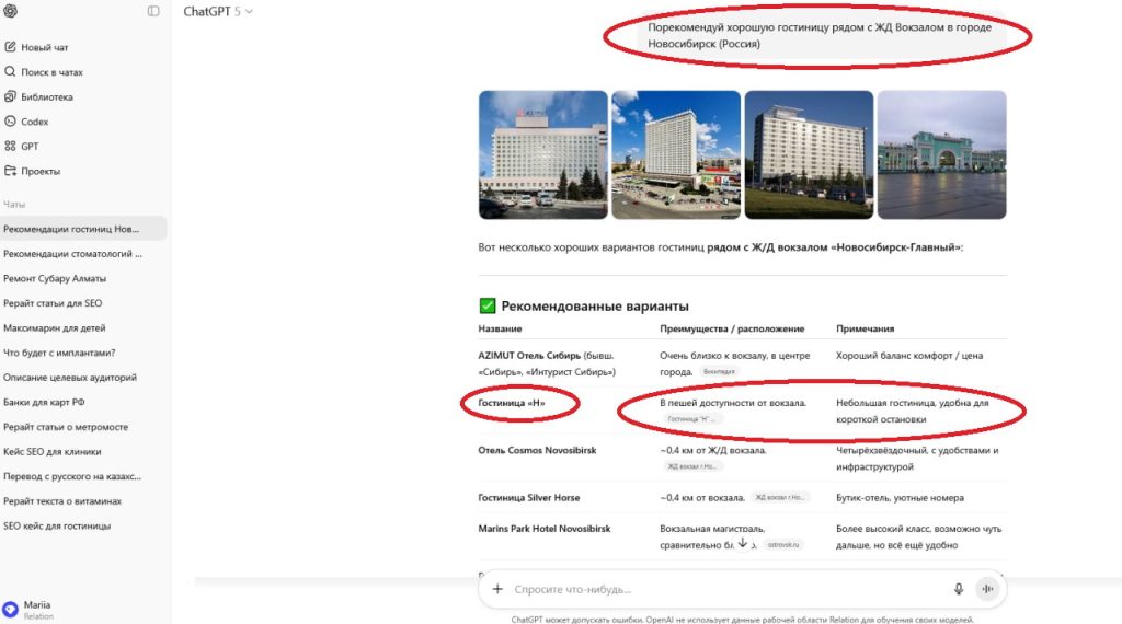 Также уникальным стратегическим решением было создание на сайте блога о достопримечательностях г. Новосибирск и позже перенесение этого блока на Яндекс-карту. Создали оригинальные статьи и фото достопримечательностей города Новосибирск для сайта и карт. В результате люди из других городов и стран, которые ищут эти достопримечательности в поиске, находят их на сайте гостиницы, узнают про неё и бронируют номера именно там. Также разработаны еще некоторые другие оригинальные приёмы, которые только в процессе воплощения.