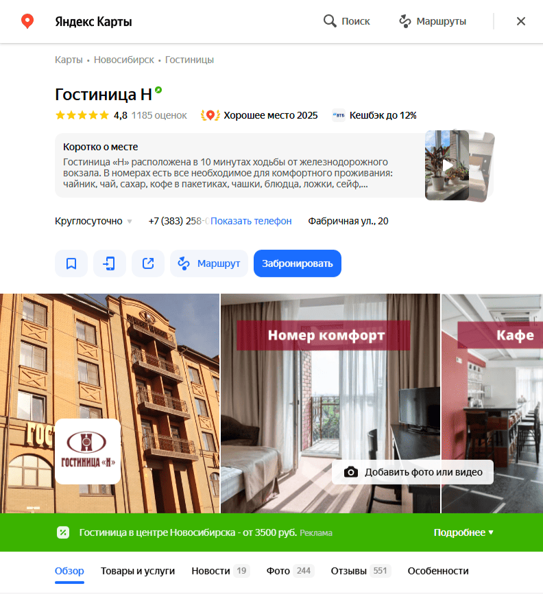 - Правильно заполнены карточки на Яндекс.Картах, Google Maps и в 2ГИС.