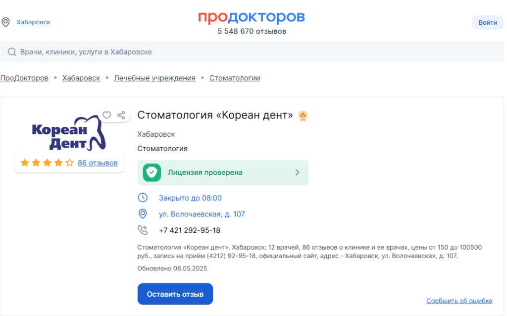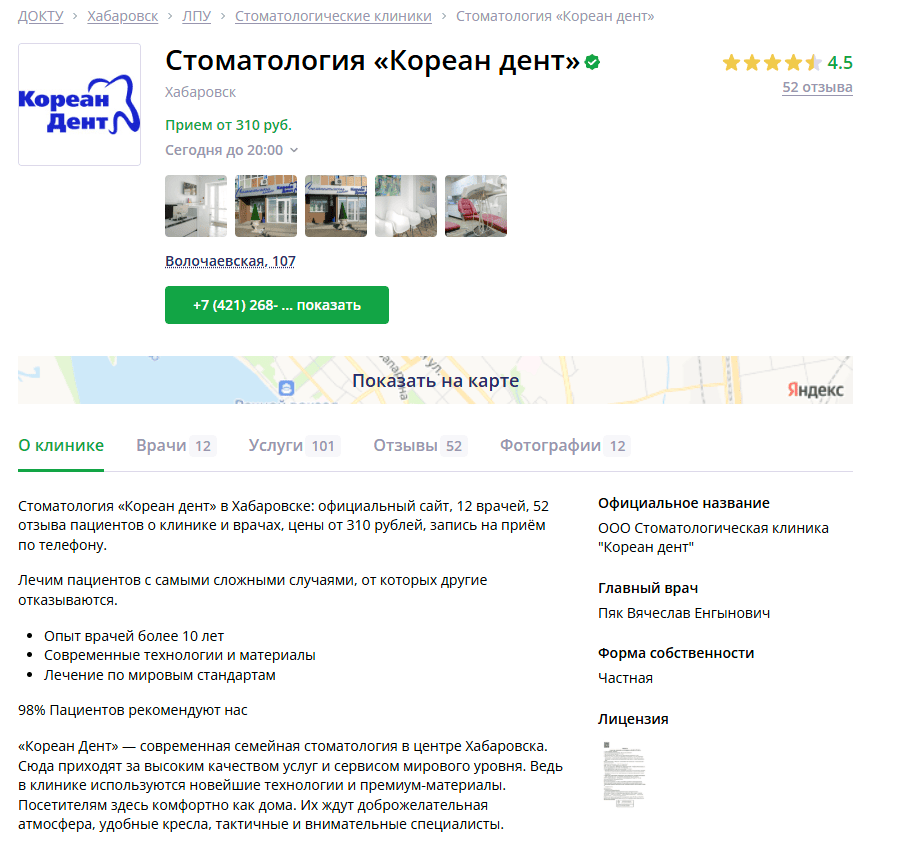 Собственник клиники «Кореан Дент» обратился к нам с задачей — усилить онлайн-позиции компании за счёт SEO. Главная цель заключалась в том, чтобы клиника вошла в ТОП-10 стоматологических клиник Хабаровска, сохранив премиальный имидж и привлекая целевую аудиторию без демпинга.
